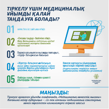 Дәрігер тіркелген пациенттердің денсаулығын бақылай алуы үшін тұрғылықты жеріне тікелей жақын емхананы таңдау ұсынылады.